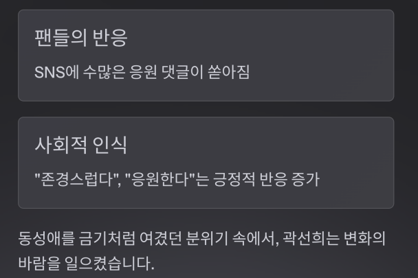 동성애를 금기처럼 여겼던 분위기 속에서, 곽선희는 변화의 바람을 일으킨 셈입니다.