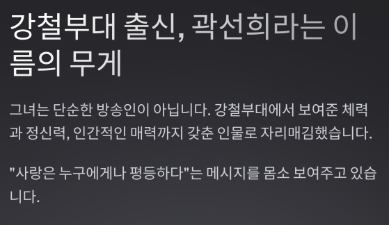 강철부대 출신, 곽선희라는 이름의 무게