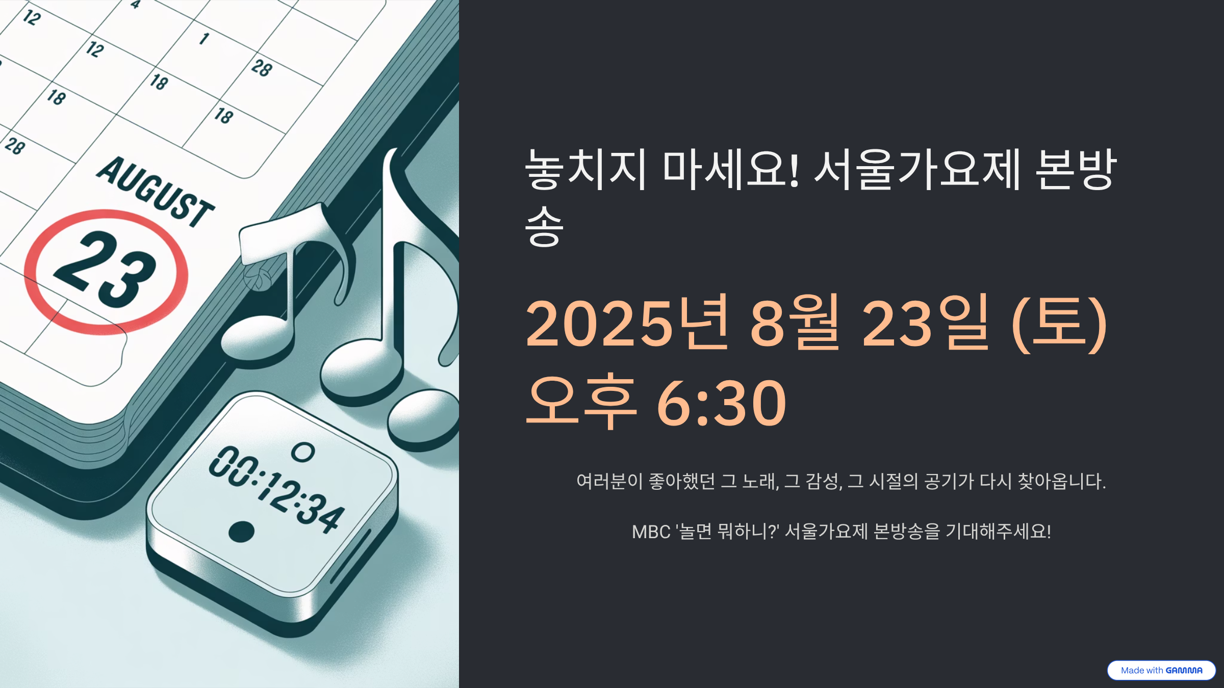8월 23일 본방을 놓치지 마세요! 여러분이 좋아했던 그 노래, 그 감성, 그 시절의 공기가 다시 찾아옵니다.