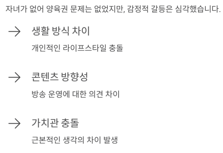 생활 방식과 콘텐츠 방향성 차이, 개인적인 가치관 충돌 등이