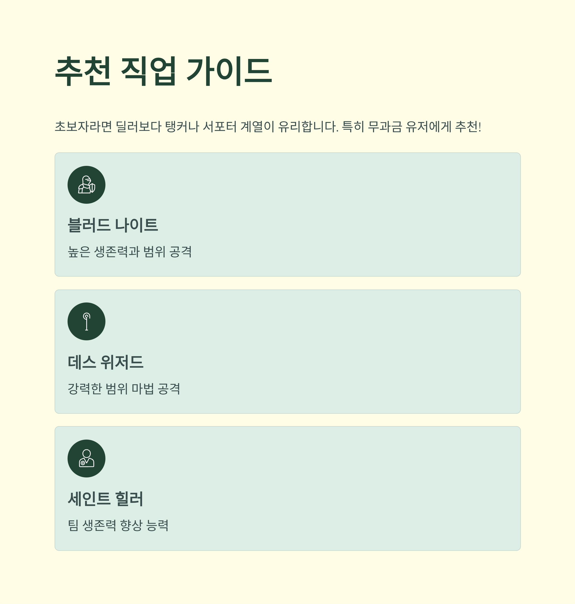 특히, 무과금 유저라면 범위 공격과 생존력이 높은 직업이 좋아요.