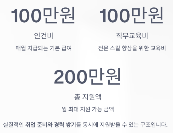 이 두 가지 항목이 결합되어 실질적인 취업 준비와 경력 쌓기를 동시에 지원받을 수 있는 구조입니다.