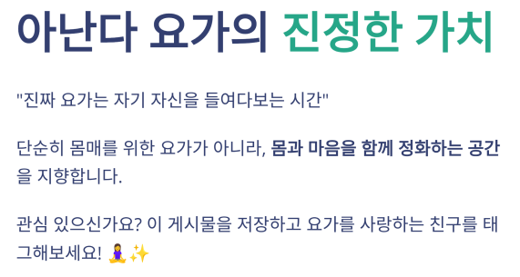 단순한 요가 수업이 아닌, 마음을 다스리고 삶의 균형을 찾는 공간을 지향합니다.