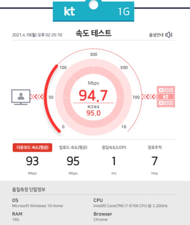 - 기가 인터넷이면 최소 Cat 5e 이상의 랜케이블 사용