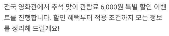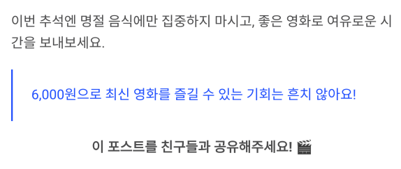 2025년 추석 연휴, 영화 관람료 6천 원으로 할인받는 방법은?