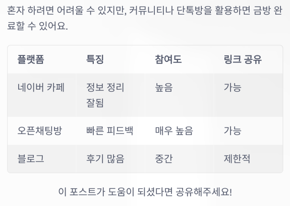 혼자 하려면 어려울 수 있지만, 커뮤니티나 단톡방, 오픈채팅 등을 활용하면