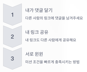 댓글 품앗이, 링크 공유, 인증 도우미 등으로 금방 완료할 수 있어요.