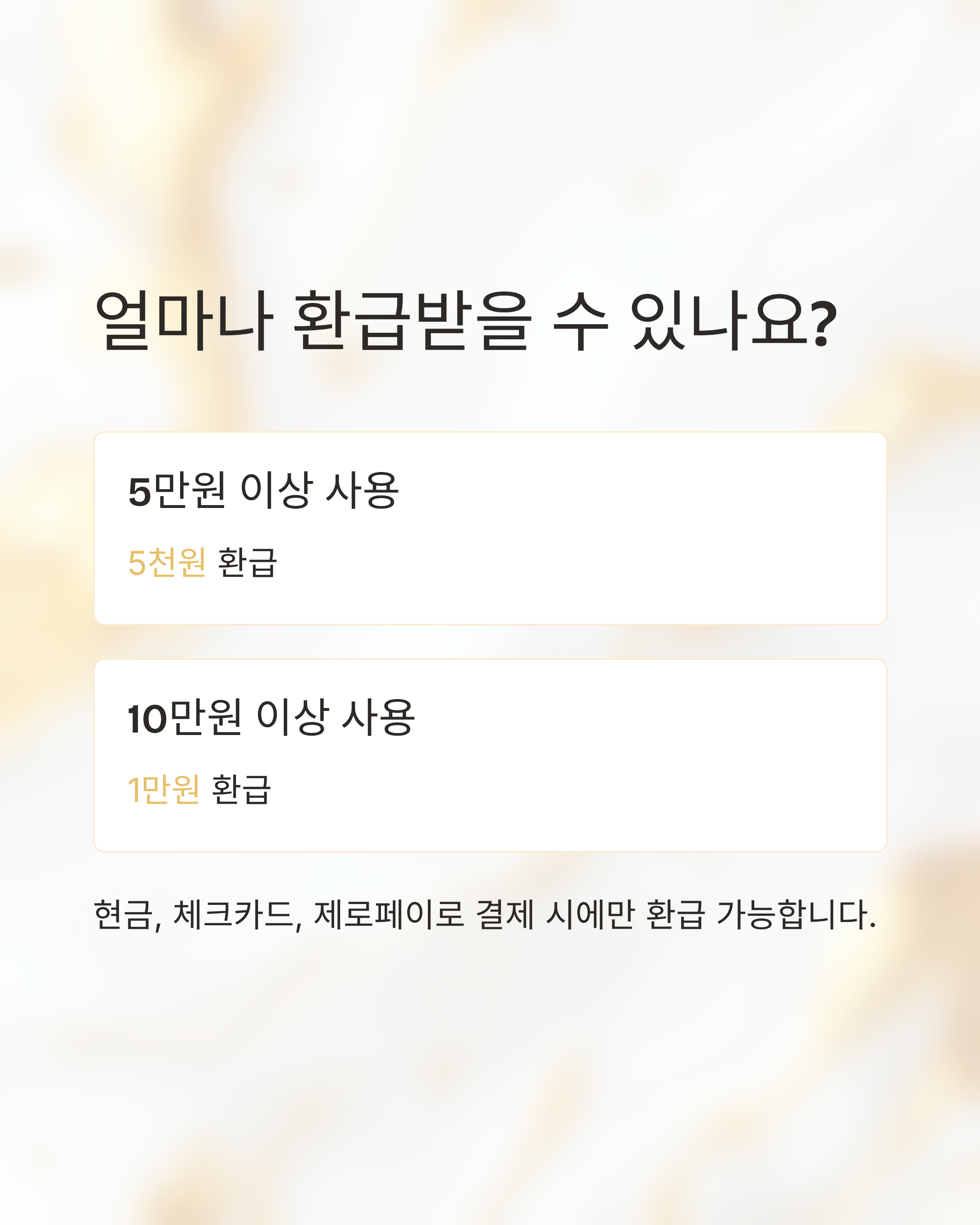 | 5만 원 이상 | 5천 원 환급 |