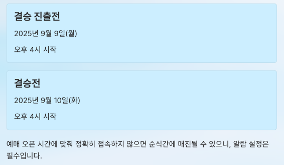 결승전 | 2025년 9월 10일(화) | 오후 4시 |