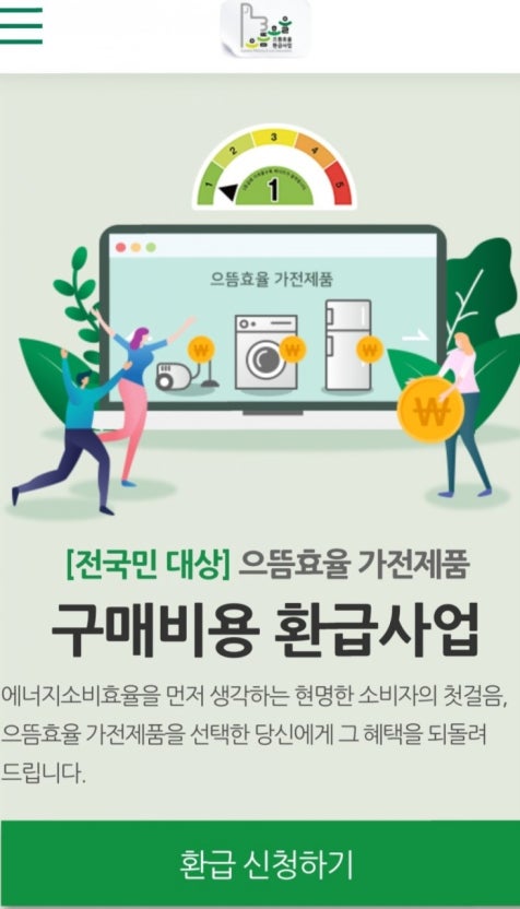 산업통상자원부가 2,671억 원 규모로 시행하는 2025 으뜸효율 가전제품 환급사업은 에너지효율 1등급 가전제품을 구매 시, 구매가의 10%를 환급해 주는 제도입니다.