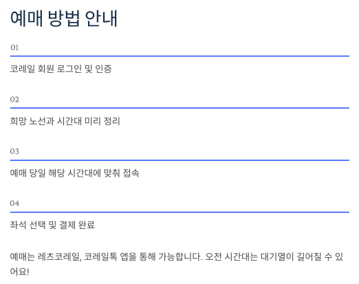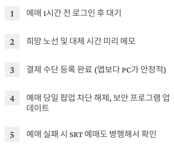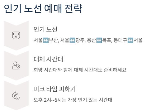 - 예매 실패 시 SRT 예매도 병행해서 확인