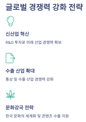 신산업 혁신 + 수출 산업 확대 + 글로벌 문화강국 전략